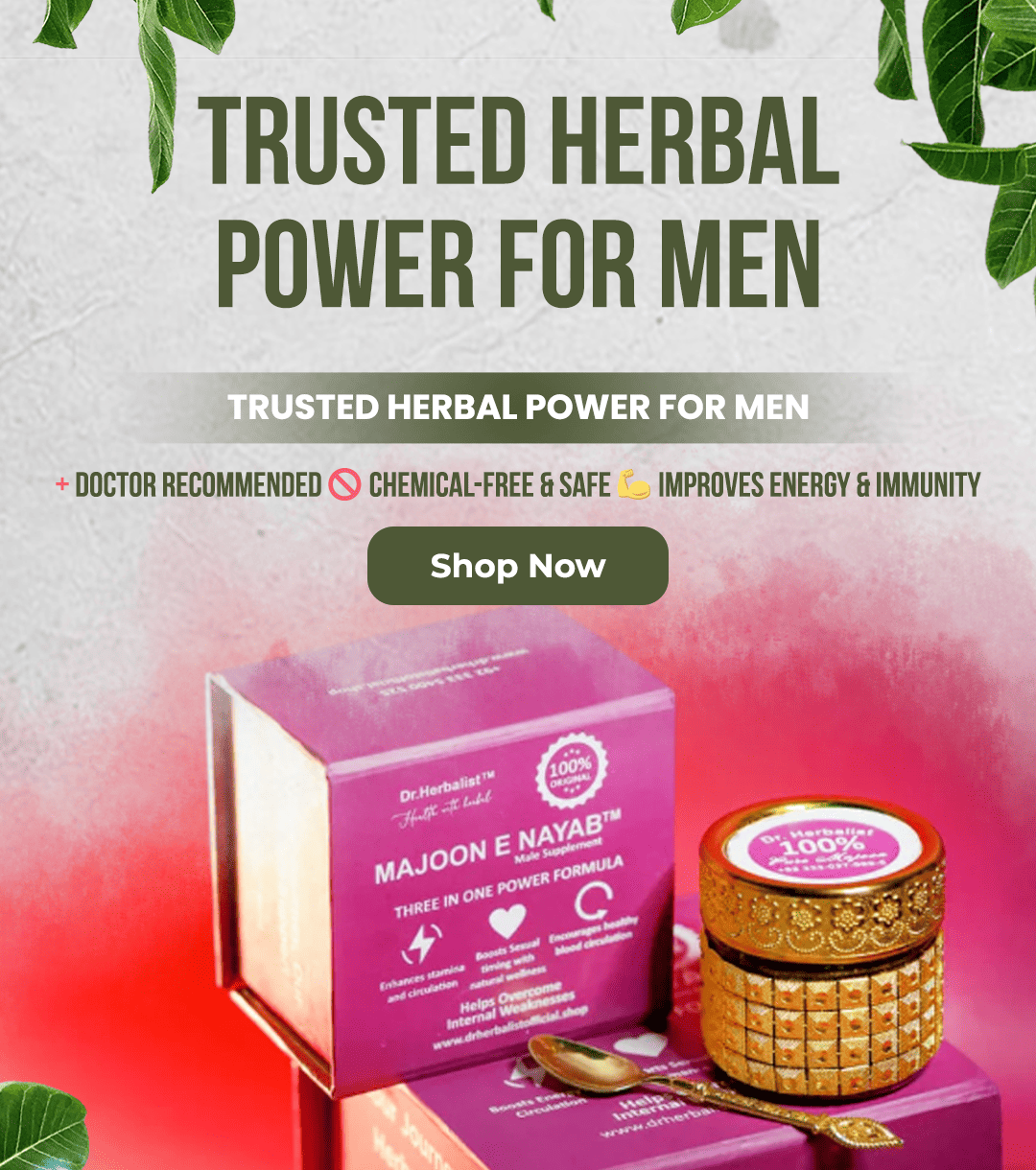 "MBBS Dr. Raheel Amjad, a passionate proponent of natural and holistic wellness, wholeheartedly endorsesDr. Herbalist Majoon-e-Nayab. This isn't just a professional recommendation—it’s his personal choice for sustained energy and overall vitality. Known for its exceptional purity and proven health benefits, Majoon-e-Nayab stands out as a trusted solution for those seeking natural well-being."